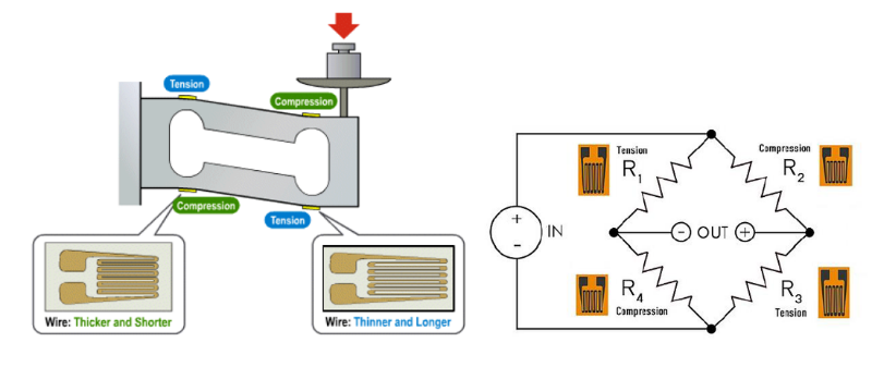 称重传感器是用来测量物体质量的传感器,传感器受外力作用下,会发生机械变形,粘贴在弹性体表面的应变片会随之变形,导致应变片阻值发生变化,由此将机械变形转变为可测量的电信号。